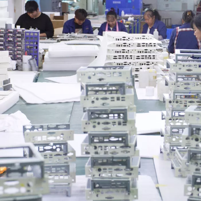 Все корпуса переключателей изготавливаются на профессиональных производственных линиях: от резки, гибки, сварки до напыления, которые можно контролировать с помощью одной остановки, чтобы гарантировать качество и доставку.